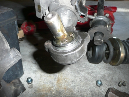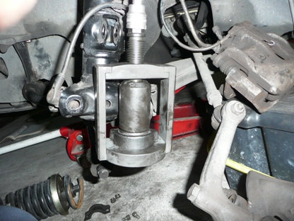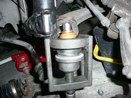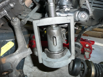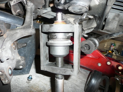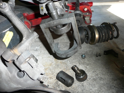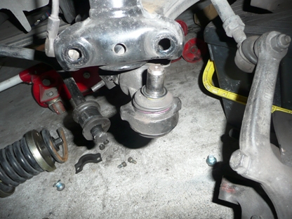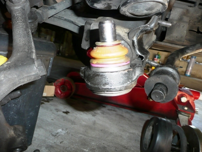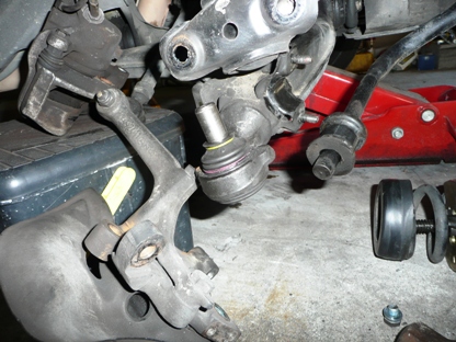 | はじめて使用する秘密兵器・・・ ロアアームが車体に付いたまま、ボールジョイントを外すことができます。 |