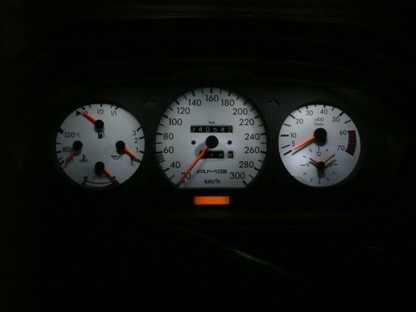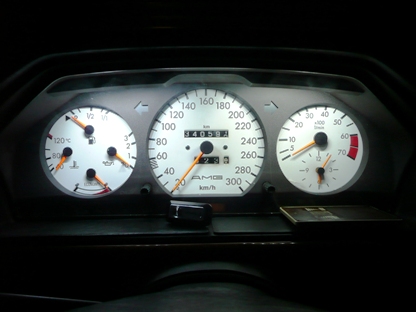 | 2011年11月7日(月) 走行 340,582Km 今年春に室内の照明をすべてLEDにしたのですが、予想はしてましたがメーターの照明が暗いです。 |