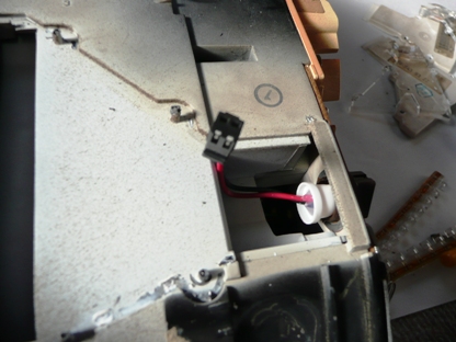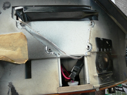 | 大きなテープで仮止め。 外した白い上蓋は少々加工すれば取り付けられますが・・・ 将来蓋をするかも。 |