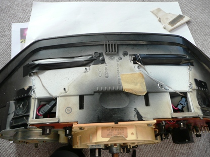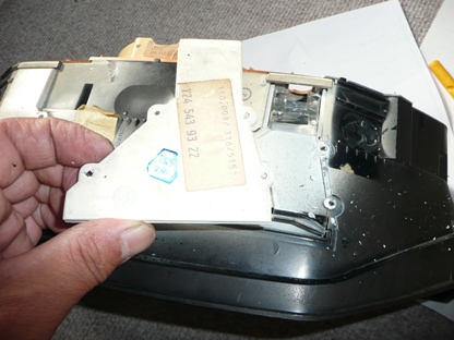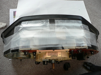 | ナイフでメーターケース上側の白いカバーの4か所を削り、外します。 | ![]() |