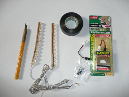 | 改善します。 用意するもの ナイフ シリコン チューブ LEDライト 12cm ヤフーオークションにて1本170円 テープ LED用ソケット電源(ホームセンターにて)398円×2 |