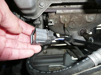 | O2センサーを取り替えることにします。 まずはどこにあるかの確認。 ボンネットを開けると簡単に見つかりました。 |