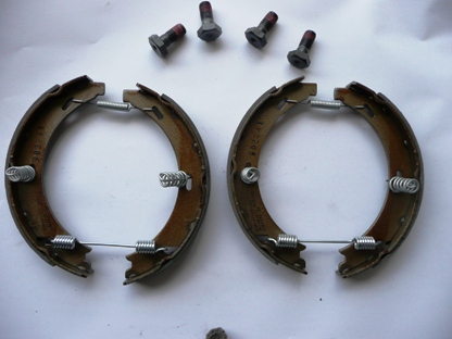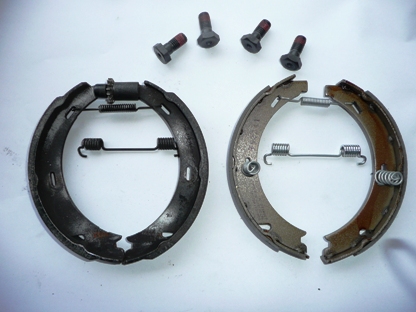 | 分解ついでに1度も交換したことのないパーキングブレーキシューを新品にします。 注文した次の日に到着 ボルトが4本・・ブレーキキャリパー取付けボルトのようです。 部品番号124 420 07 20 ¥4,257(税込み) JURID製 SJより |
