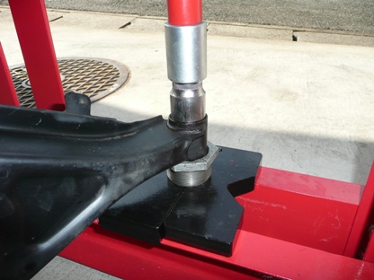 | 下側の土台の上下を逆にして、上部はロアアームを貫通できるよう細い状態にします。 じわじわ抜けるのではなく、カキーン、カキーンと抜けていきます。 |