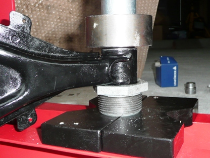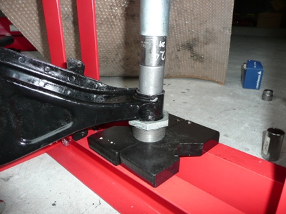 | 今年購入した油圧プレス、2度目の活躍の場。 たびたび登場する道具 フロントロアアームのポールジョイント脱着、ハブベアリング脱着に活躍してます。 |