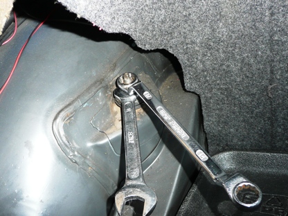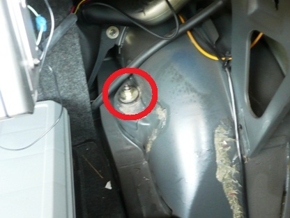 | トランク左右の内張りをめくるとアブソーバーのナットが見えます。 | ![]() |