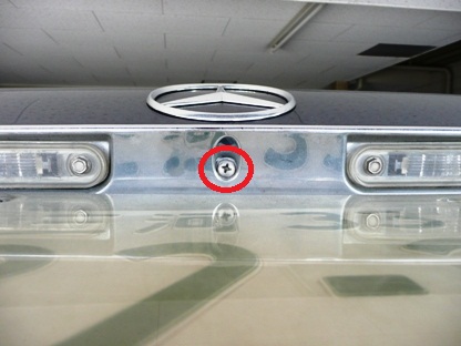 | ナンバー取り付けボルトの所へ取り付ける予定でしたが、ココいいんじゃない? ちまたの車、どうしてセンター(車の中心)に装着しないんでしょう? ここに装着するなら、もう少し小ぶりのものを選べば良かったかな。 |