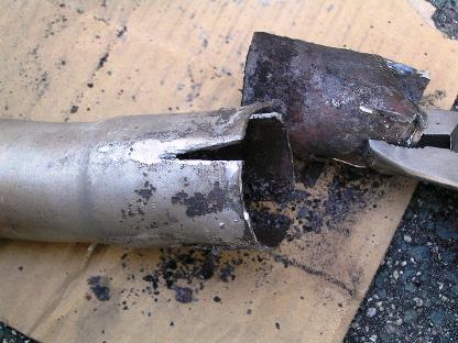 | 何とかしてみます。 グラインダーで切って、叩いて・・・ |