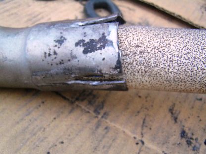 | センターマフラーのタイコの付け根に穴が開いてしまってるんです。 パイプの3分の1くらい亀裂が入ってしまってます。 粘土状で、乾くと金属みたいに固まる補修材で塞いでいます。 でも交換の準備をしておきます。 |