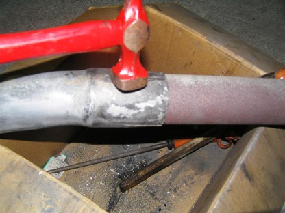 | 広がりすぎたパイプをハンマーで叩き、 | ![]() |