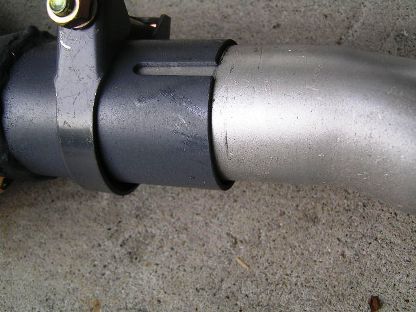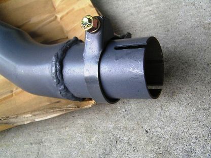 | 右が純正センターマフラー:外径49ミリ 左が社外品リアマフラー :内径50.3ミリ コレがぴったり合わないと、また溶接しなくてはなりません。 |