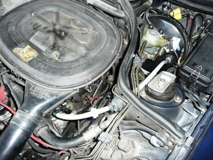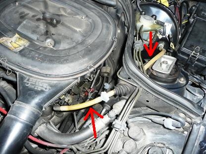 | 2008年11月2日(日) 走行293,345Km 何ら機能に問題はないのですが、外観がみすぼらしいので交換する事にしました。 ブレーキブースターからインテークマニーホールド間のバキュームホースとチェックバルブ。 |