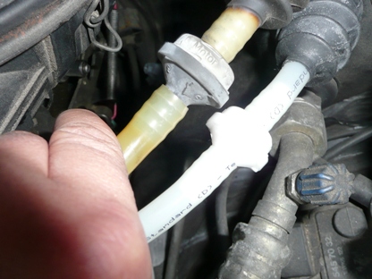 | 新旧比較 同じ形状です。 新品は純白 チェックバルブの点検は双方向から空気を吹き込んでみて、ブレーキブースター側からのみ空気を吹き込むことができれば正常。 確認したところ、正常でした。 |