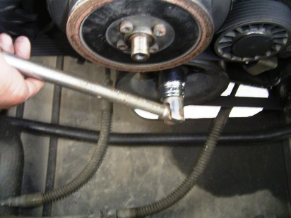 | デスビ本体を取り出す場合ローターの向きの位置を覚えておく必要があるのですが、後先考えずに抜いてしまった私は・・・・ クランクプーリーを右回りにまわして (27ミリのソケット) |
