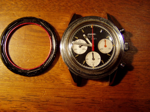 | ベゼルをはずして、ティシュペーパーでお掃除しました。やはり細かいほこりが。 清掃後、とてもスムーズに回るようになりました。 風防は前面から外せないみたい。 |