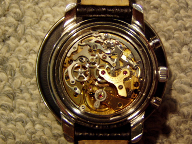 | 裏蓋を外してみました。裏蓋に0という刻印があるのでその刻印が竜頭の位置まで回します。 (45度) |