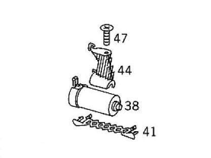 | 上からネジで止めるようです。 44番は右ハンドル・左ハンドルで形状が逆になります。 41番の鎖が必要・・・ |
