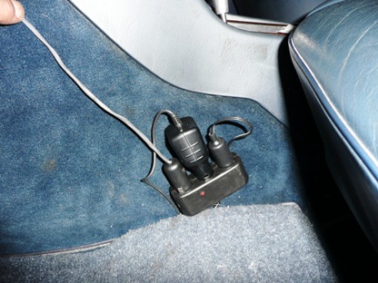 | 運転席足元でシガーソケットへ ゴリラとレーダーと電圧計が刺さってます。 |