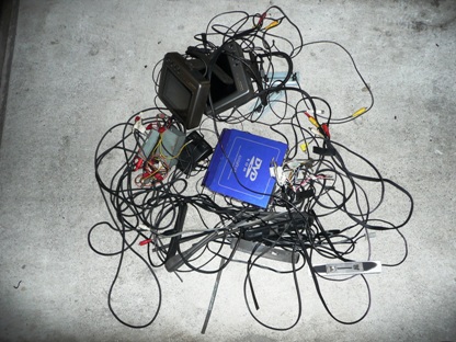 | モニター 下からAUX テレビの音声を車のスピーカーから出してます。 映像 DVDチェンジャーの映像を出力 一番上はイヤホンを刺す所…こんなの必要?? |