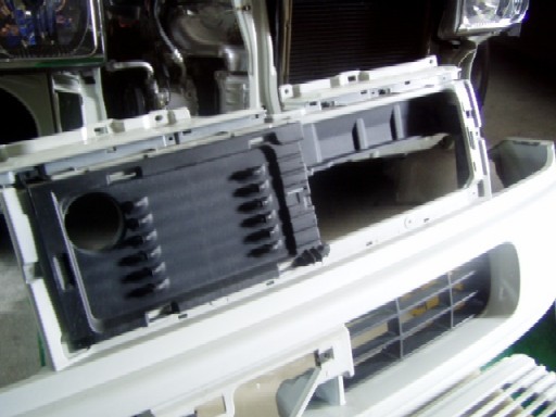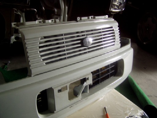 | 2003年5月14日中古をGET 色はブルーイッシュブラックパール(純正)です. 周りの枠分部は車体色(パ〜ルホワイト)で塗装する予定でしたが、到着したグリルを見ると、このままの方が精悍? |