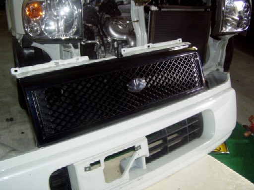| 2002年9月、購入当初よりこのおしとやかなグリルが今一気に入りませんでした。 その後、ターボ車が追加され、ターボ車のグリルが欲しくなりました。 |