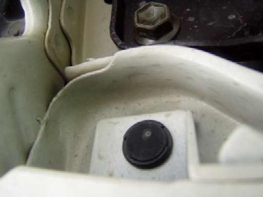 | グリルをはめ込もうとしても、何故かはまりません。 何かが干渉しているようです。 この赤丸分部が、お邪魔 ターボ用のネジ穴部分が当たっているようです。 |