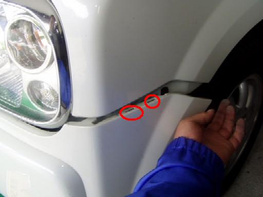 | バンパーの角、下側に2ヶ所クリップがありますので外します。 | ![]() |