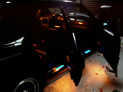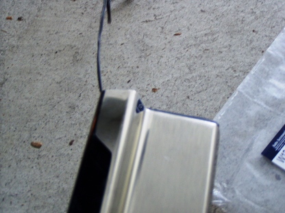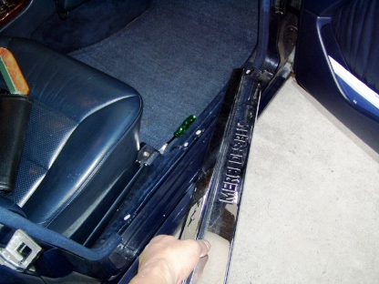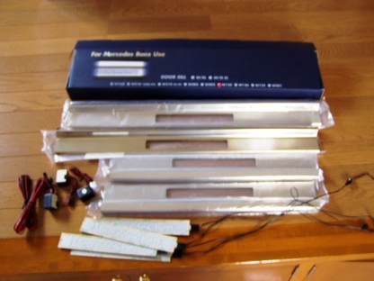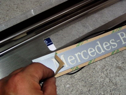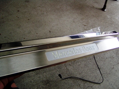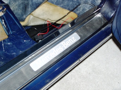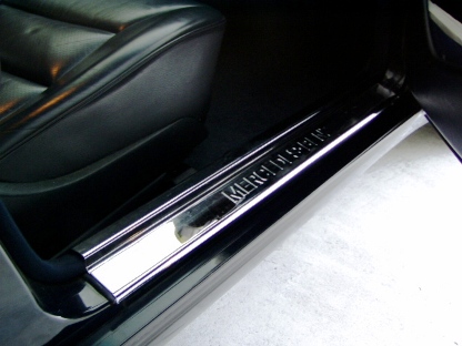 | 2004年9月18日(土) 走行 222,696Km 大昔に取り付けたステンレスのエントランスモール 10年以上前だったかな? 当時、とっても高価でした。 純正のエントランスモールに両面テープで貼り付けて取り付けます。 |