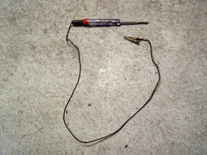 | 茶色に白線は多分、アースでしょうから どちらかの赤色に白線に繋いで見ます。 いきなり繋いで光るエントランスモールを壊してしまっては大変ですので、検電ドライバーを使用して光ることを確認します。 テスター持ってるんですが、どうも使い方がわかりません(恥) |
