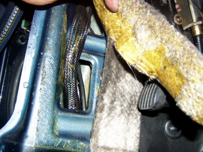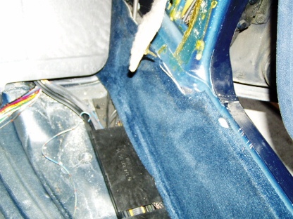 | リアシートを外す必要が・・・・ カーペットをめくるために。 このあたりの線かな? |