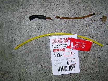 | 運の良いことにホームセンターに同じ外径・内径のホースがありました。 20センチも購入したので、36円も出費してしまいました。 |
