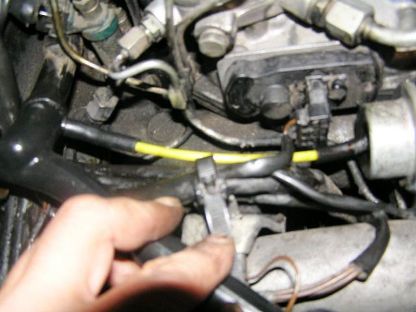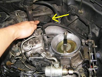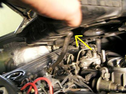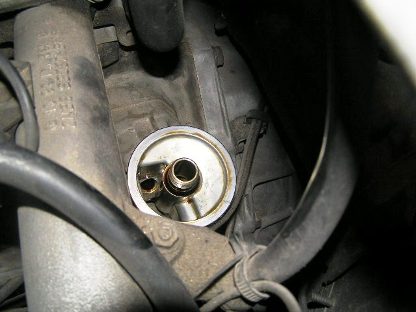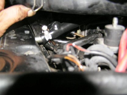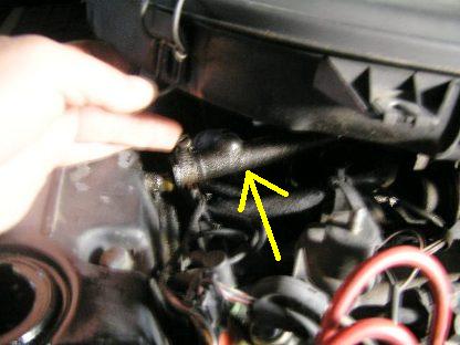 | ホースの上側はエアークリナーケースの下側に繋がっています。 どのような役割かは??です。 ここははめ込むのに苦労します。 |