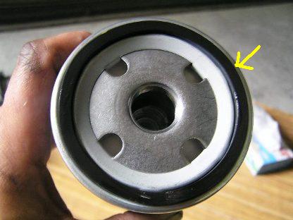 | 新品を取り付け時には、オイル缶に指を突っ込んで、指先に付いたオイルを画像のゴムパッキンに塗りましょう。 |