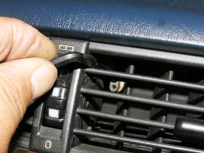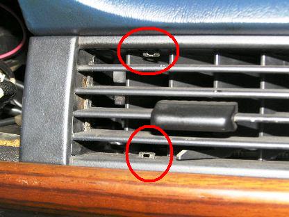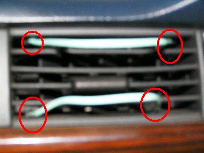 | エアコン吹き出し口に移ります。 4ケ所つめを同時に持ち上げて・・・ 針金2本を差し込むと簡単です。 |
