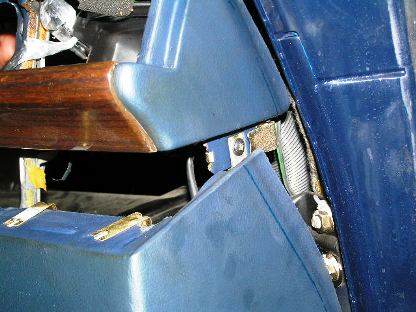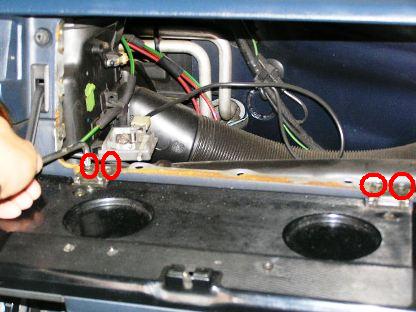 | 下に移っていきます。 助手席グローブボックス下のネジ2ヶ所はずします。 画像はもう外した後の物です。 |