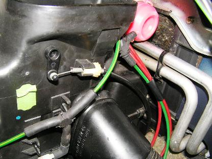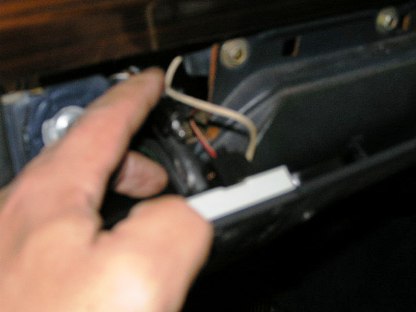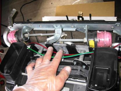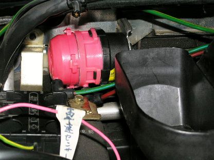 | 引っ張り出して、コネクターを外します。 反対側の吹き出し口も同じです。 外した配線、迷子にならないようにビニール紐でも縛っておきます。 |