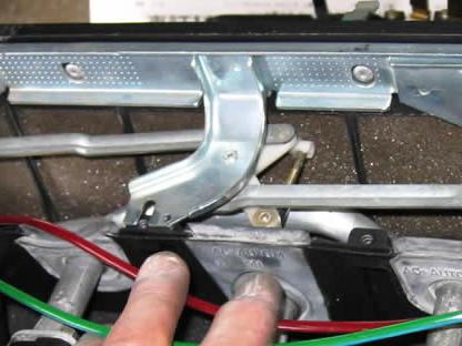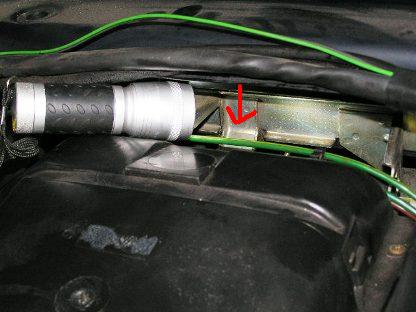 | 赤い矢印のところのL型ステーにプラスチックのシャフトがありその左右にそれぞれのエレメント(アクチュレーター)のシャフトを脱着するのですが、頭はフロントガラスにつっかえるし、暗いし、狭いし、手が2本しかないので電灯持つと1本しか手が使えない・・・ 大変でした。 |