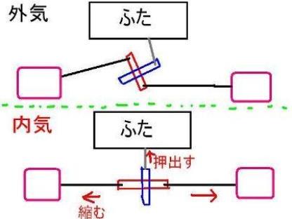 | 蓋(フラップ)コレが開いた状態。外気導入時の状態です。 |