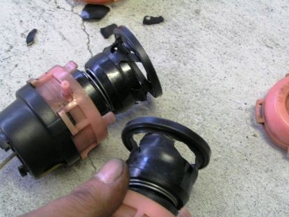 | こんなにボロボロでした。 で、画像を見て思ったんですが、このゴムが部品として手に入ればダッシュボードを外さなくても右側はグローブボックス、左側はメーターを外すだけで取替え可能に思えます。 後は外した部品を清掃しながら(普段手が届かないような所を)組み立てていくだけです。 |