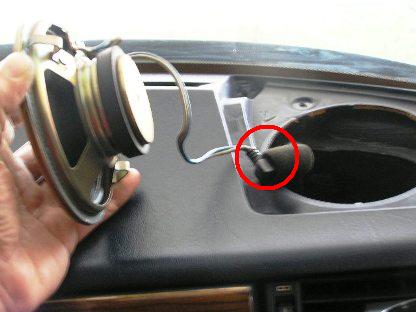 | さっそく作業開始します。 上から下へ攻めて行くことにします。 スピーカーを外します。 昔メーターパネル外しはココからアクセスしていました。 |