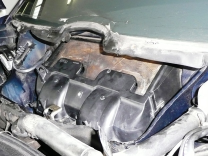 | 蓋を無理に上に上げて壊したり部品が外れてしまっては大変(室内からダッシュボード・エバポレーターを外さなくてはならなくなってしまいます)ですので安全な方法・・・干渉しないよう蓋を削り終了。 | ![]() |