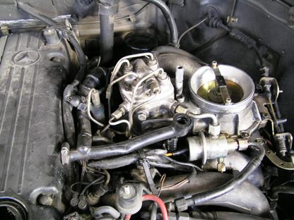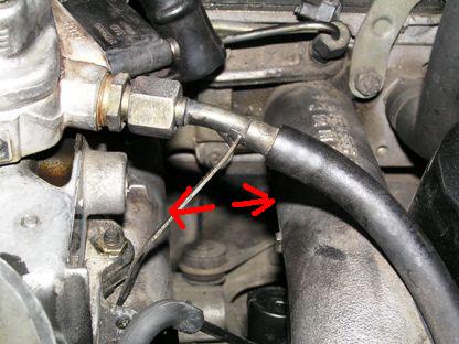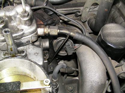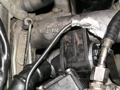 | 102エンジンのアイドルエアーバルブはゴムに通されていて、インテークマニーホールド2本に挟まれて固定されています。ゴムからバルブを先に引き出すスペースもありません。 | ![]() |