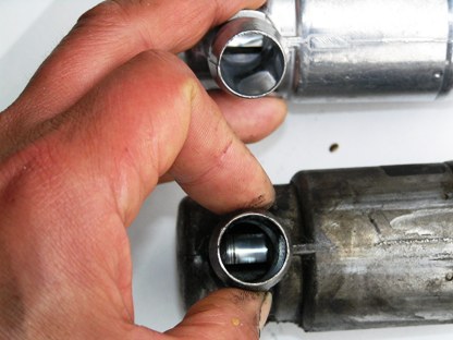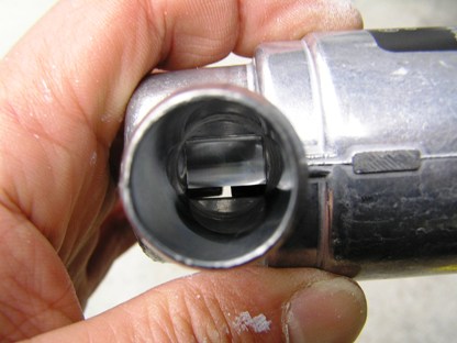 | アップで見てみます。少々、汚れています。細い棒を突っ込んでバルブを開きながらパーツクリーナーを吹いてみました。 思ったほどの汚れではありませんでした。 まだまだ充分使用できそうです。 |