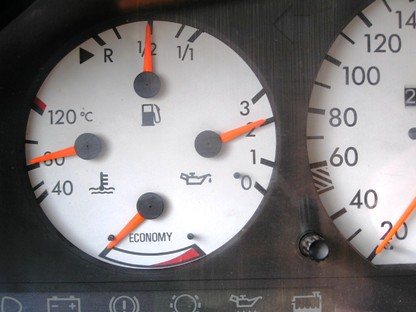 | 2007年2月24日(土) 走行263,385Km 皆さんのお車、アイドリング時、油圧計の針はいくつを指しています? 冷えてる時は、3を指してていいんですよね? |