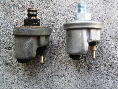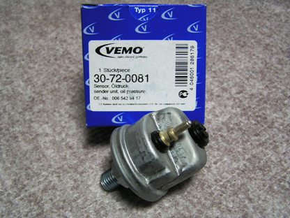 | アイドルエアーバルブ交換後も変化なしでした。(でも針がピクピクしたときのグァン、グァンは無くなったかも) 1.上記のホースの亀裂が原因か? 2.単にこの油圧センサーが不良なのか? 3.それとも正常で気にすることは無いのか? コレも新品に換えちゃいます。 オークションにて 006 542 94 17 OIL PRESSURE GAUGE \7,056+送料\630=\7,686 |