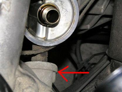 | オイルフィルターを外せば脱着が容易になるかもしれません。 次回オイルフィルター交換時までに部品を用意します。 |