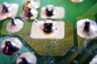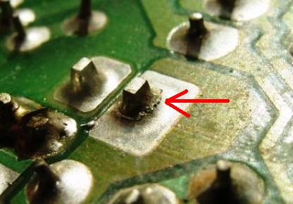 | Edyeの秘密部屋で相談すると多くの方からご助言を頂き、オーバーボルテージリレーが原因ではないかと。 リレーを旧タイプと交換するとともに、「対策品」を開腹してみました。 ごらんのような亀裂が発見されました。 |