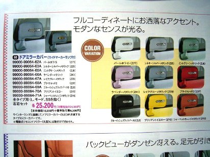 | 2006年5月28日(日) 走行 40,785Km メルセデスにウインカー内蔵ドアミラーを付けたところ、結構気分がいいんです。まだまだ装着している車少ないようで、優越感に浸れます。 自分じゃ見えないのに、なぜでしょう>^_^<☆ ラパンにも付けたくなりました。 オプションで 本体価格\18,900- 取付工賃\6,300- |