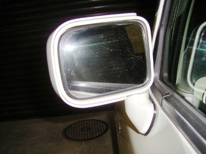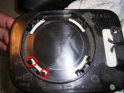 | ミラーの隙間からSST(落ちてる金具を折り曲げて作成)を差し込んでツメを広げます。 | ![]() |