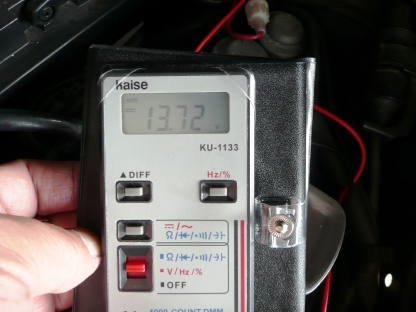 | エンジンをかけて電圧を測ってみます。 当分様子を見てみます。 2008年8月26日(火) 走行290,000Km ちょうど2カ月経過 何ら問題は発生していないので解決と判断します。 |